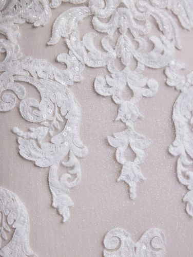 This Tuscany Royale dress features the modification of the "sparkle tulle #1" fabric instead of the Chantilly lace. https://www.maggiesottero.com/maggie-sottero/tuscany-royale/16911