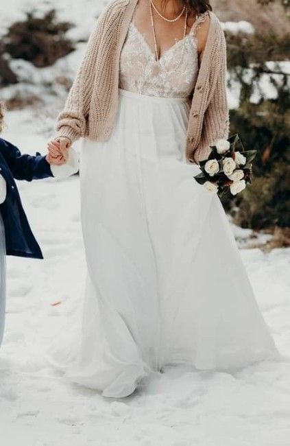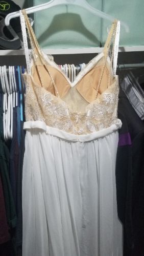 White dress with beautiful sequined beige top. Unaltered. Worn for a very brief time for a simple elopement