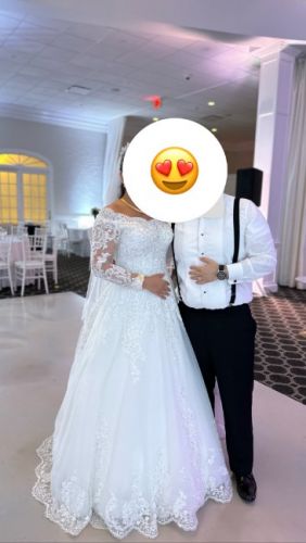 My original wedding dress is shown in the first two photos. My tailor made a few changes to my wedding dress. I only wore it for one night. The second person will be you.