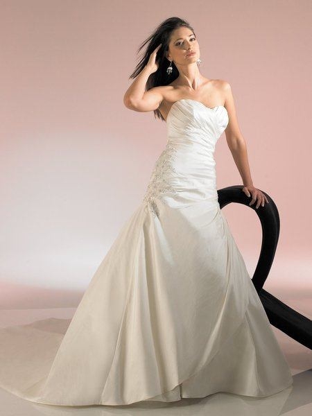 It was bought by my exgirlfriend. Its Ivory, size 14, and just a beautiful dress. It was bought for 800, Im asking 200 or best offer. Bought less than a year ago, I need to sell it. Its taking up room and I just don't have the space for it anymore.