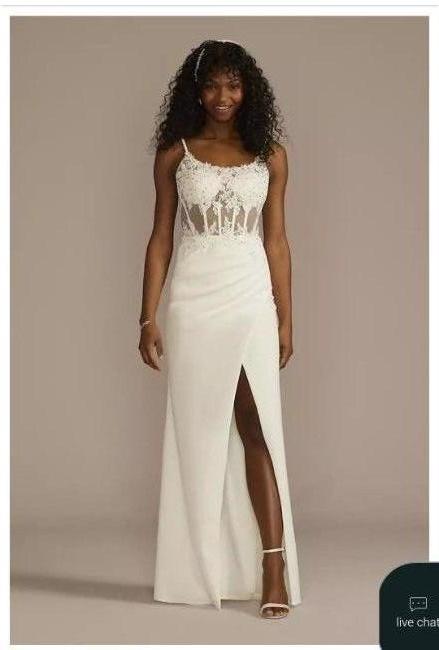 Illusion Corset Crepe Sheath Wedding Dress.
