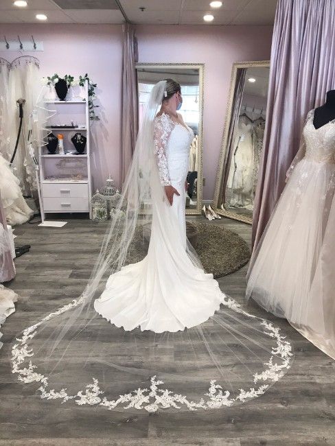 San Patrick Genista Gown with Casablanca Belt and Veil. Color is off-white (white). Bought dress brand new. Only used once and dress was preserved. Bought in Size 18, Heigh 5'8'', Bust: 104 cm, Waist: 93 cm, Hip 115. Alterations done to adjust to a size 16 (2 in less than size 18). When looking at wedding dresses, sizing runs high. I am a size 14 comfortably, but dress sat better as size 16. The Casablanca Belt can easily be taken off, but ties very well with the dress. Back of dress has zipper and some buttons. Nude mess is also incorporated. See attached photo and pricing. Belt and Veil included. Valued at $2,500. See discounted price for $1,500, willing to negotiate for the right fit! Great for a Fall wedding, but all seasons! Has lace sleeves! Not heavy, easy to wear and comfortable for your wedding day!