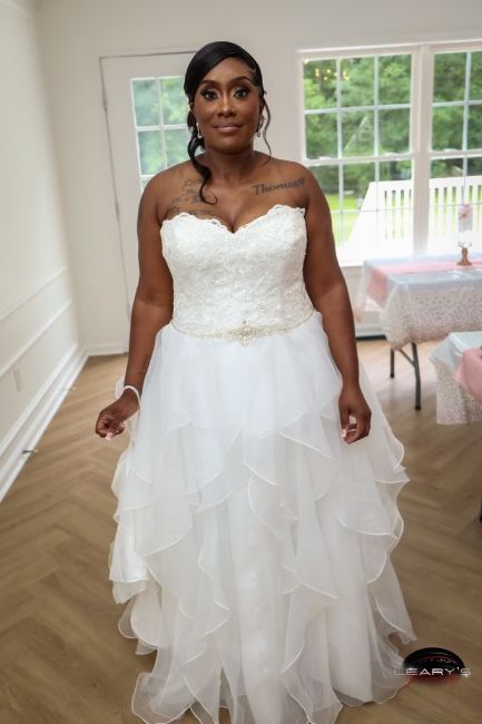 Wedding dress size 14 only worn once got married last year paid 900 looking to sell it for 500 brand new in good condition