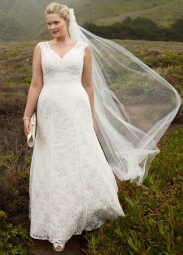 Selling the wedding dress I wore 10/18/14. I paid over $700, sale price now at David's Bridal is $600.00. Chapel train. Size 16W, no alterations. It can be altered down to a size 12 or 14.